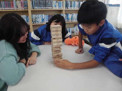今日もFunglish Dayがやってきましたが、またアクティビティを行いました!今日はジェンガで遊んでみました。